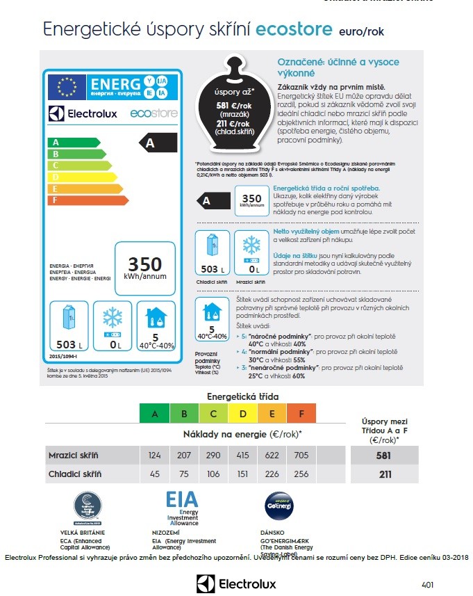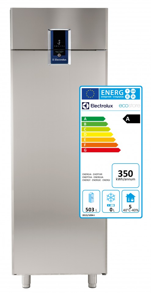 Electrolux Professional ecostore HP je ve třídě A, kompatibilní s požadavky nejvyšších tříd v rámci prvního povinného celoevropského energetického štítkování profesionálních chladicích a mrazicích skříní.