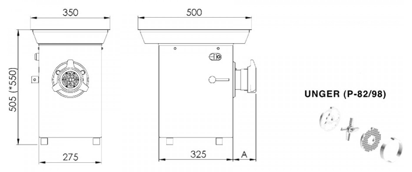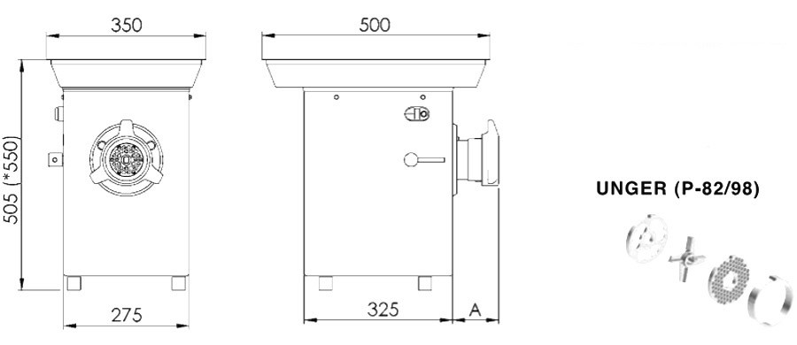 - v základu stroje: deska 82/6 mm, deska 82/8 mm, 4-břitý nůž a plastová plnící tlačka