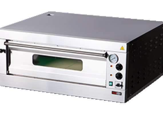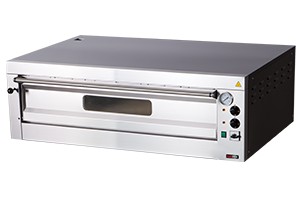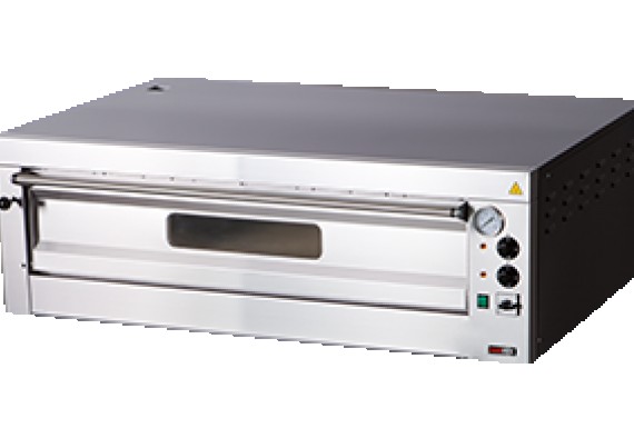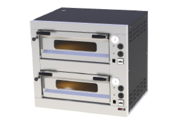Přední panel pizza pecí včetně dveří vyroben z nerezové oceli AISI 430.