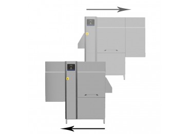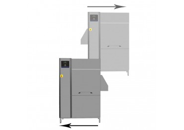 boční panely a vnitřní komory, mycí a oplachová ramena, dveře a systém posunu košů. - Vhodné jak pro provoz zprava doleva, tak i pro zleva doprava díky snadné změně směru posunu na místě (z výroby dodáváno std. v provedení zprava doleva)